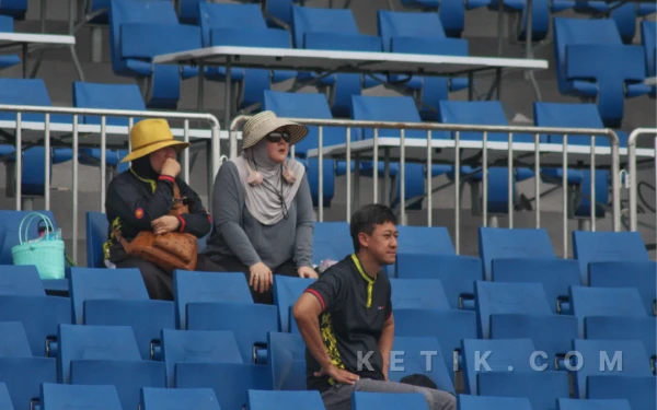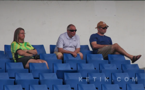 Tiga orang tua dari pemain Australia U-17, sedang serius menyaksikan anaknya bertanding melawan Brunei Darussalam di turnamen ASEAN U-17 Boys Championship 2026. (Foto: Fitra/Ketik.com)