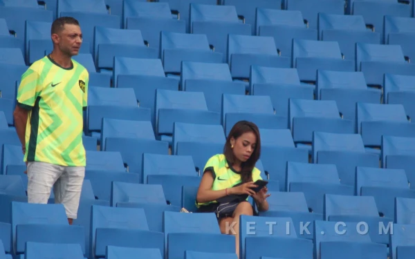 Ekspresi tegang salah satu keluarga dari pemain Australia. Ia memilih berdiri menyaksikan pertandingan dari atas tribun. (Foto: Fitra/Ketik.com)