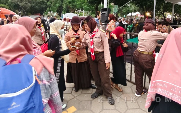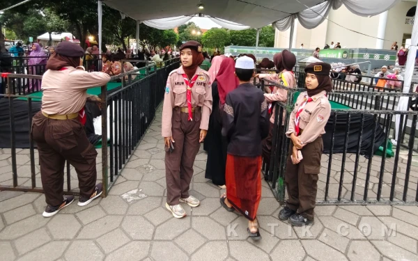 Sikap disiplin anggota Pramuka saat menjalankan tugasnya di Masjid Al Akbar Surabaya. (Foto: