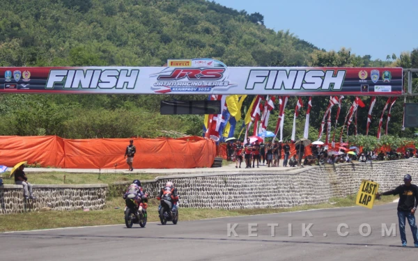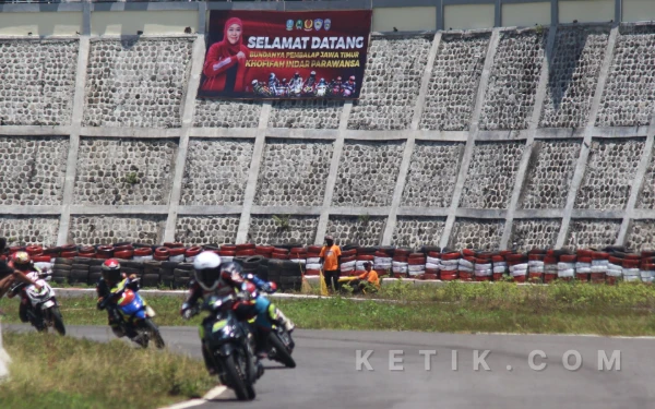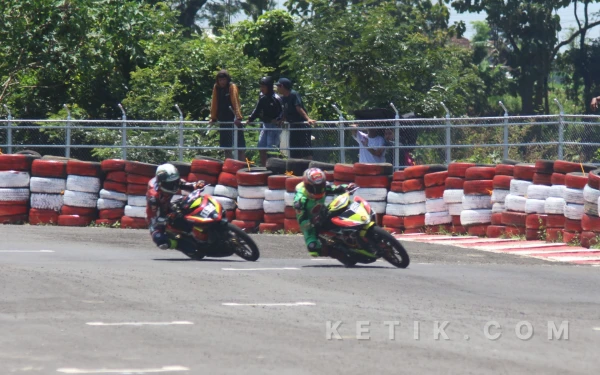 Pembalap saling bersaing memperebutkan posisi terbaik demi naik podium Kejurprov Road Race Jatim Racing Series 2026 di Sirkuit Suryo Magetan. (Foto: Fitra/Ketik.com)