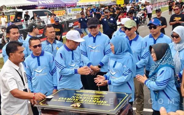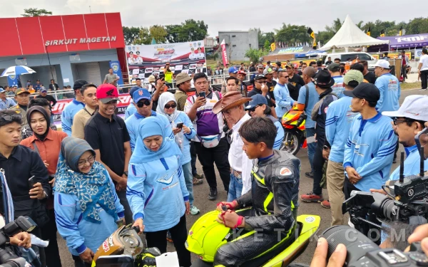 Gubernur Jatim Khofifah Indar Parawansa meresmikan nama Sirkuit Suryo Magetan, sekaligus melepas final Kejurprov Road Race Jatim Racing Series 2026. (Foto: Fitra/Ketik.com)
