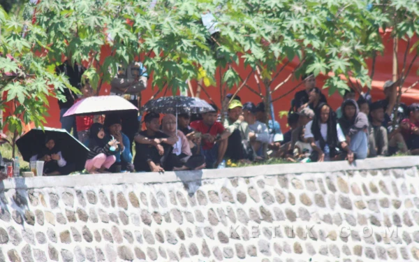 Teriknya matahari di Sirkuit Suryo Magetan tidak menyurutkan antusiasme penonton menyaksikan Kejurprov Road Race Jatim Racing 2026 di Sirkuit Suryo Magetan. Penoton menyaksikan dengan memakai payung. (Foto: Fitra/Ketik.com)