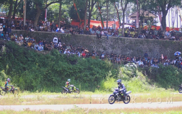 Pembalap di Kejurprov Road Race Jatim Racing Series 2026 saling bersaing, untuk bisa meraih posisi pertama. (Foto: Fitra/Ketik.com)