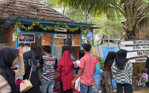 Pengunjung Pantai Lon Malang Sampang saat membeli tiket masuk. Minggu, 22 Maret 2026 (Foto: Mat Jusi/Ketik.com)