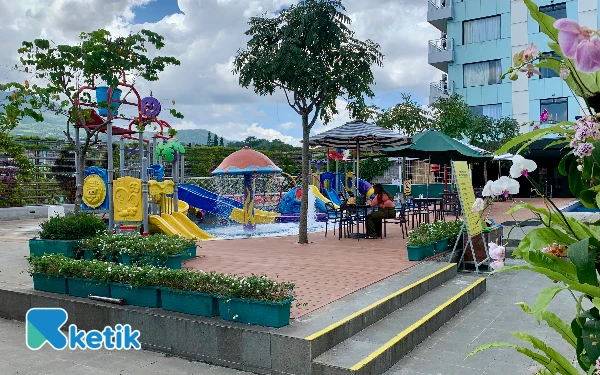 Fasilitas ruang tunggu terbuka dan kolam renang yang bisa digunakan untuk anak-anak. Selain itu, ada juga orchid garden dan Panderman Cafe yang menambah kenyamanan. (Foto: Dafa Wahyu Pratama/Ketik.com)