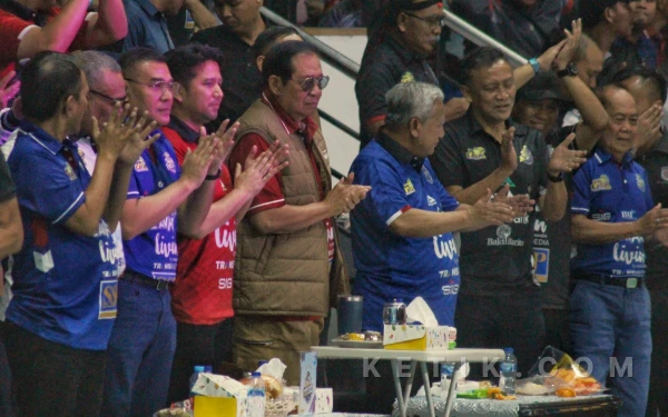 Susilo Bambang Yudhoyono (SBY) pemilik klub Lavani memberikan dukungan langsung saat laga melawan Samator. (Foto: Fitra/Ketik.com)