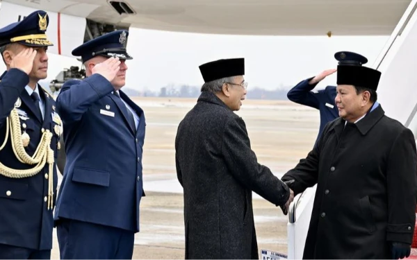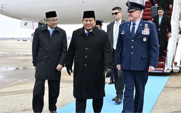 Presiden Republik Indonesia Prabowo Subianto tiba di Amerika Serikat (AS) pada Selasa, 17 Februari 2026 pukul 11.55 waktu setempat di Pangkalan Militer Andrews, Washington DC. (Foto: BPMI Setpres/Cahyo)