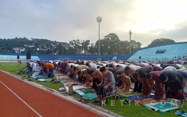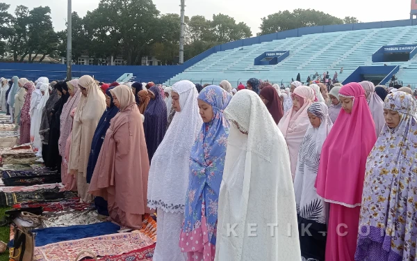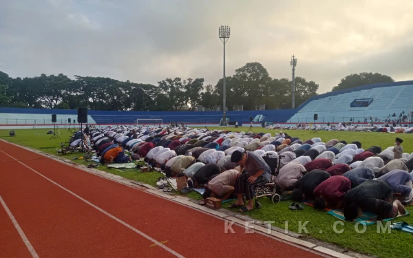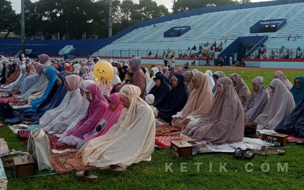 Salat Idulfitri yang dilaksanakan oleh jemaah Muhammadiyah di Stadion Gajayana Kota Malang berlangsung khidmat. (Foto: Aliyah/Ketik.com)
