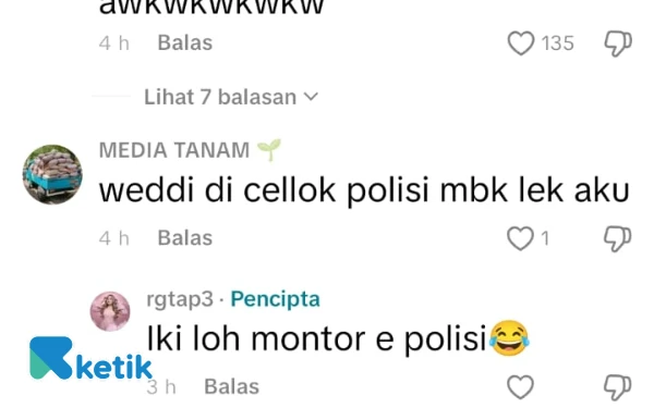 Uniknya saat dikomentari akun @Mediatanam "weddi di celok polisi mbk lek aku". Si pemilik akun @rgtap3 justru membalas komen "iki loh montor e polisi 😂"