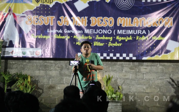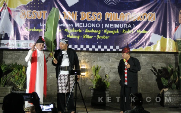 Setelah berlangsung di Surabaya dan Sidoarjo, pentas keliling “Besut Jajah Deso Milangkori” oleh seniman Meimura mudik ke Jombang. (Foto: Rifat/Ketik.com)