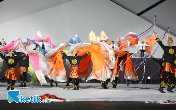 Tarian kolosal menjadi salah satu sajian di panggung Upacara Pembukaan PON XXI Aceh-Sumut 2024 di Stadion Harapan Bangsa, Kota Banda Aceh, Senin malam, 9 September 2024. (Foto: Khaesar/Ketik.co.id)