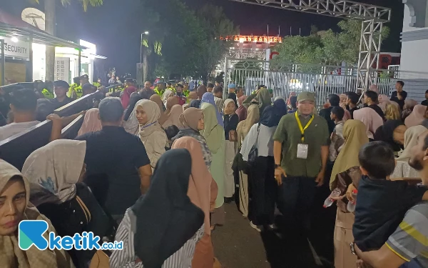 Masyarakat yang tidak bisa masuk ke stadion memadati area luar Stadion Harapan Bangsa. Panitia menyediakan layar besar agar masyarakat tetap bisa menyaksikan acara Upara Pembukaan. (Foto: Khaesar/Ketik.co.id)