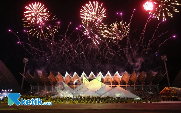 Pesta kembang api dalam Upacara Pembukaan PON XXI Aceh-Sumut 2024 di Stadion Harapan Bangsa, Kota Banda Aceh, Senin malam, 9 September 2024. (Foto: Khaesar/Ketik.co.id)