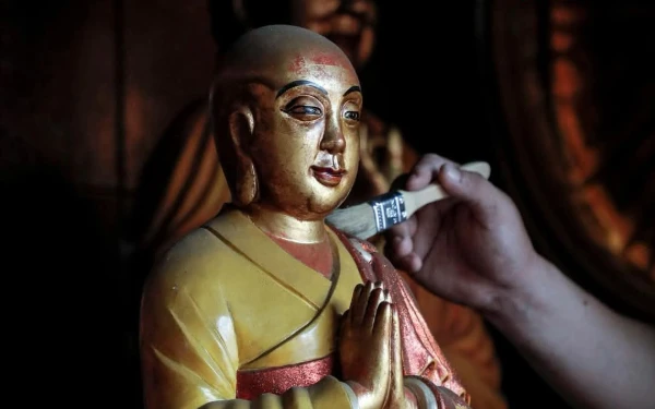 Pembersihan patung dewa dalam rangka Tahun Baru Imlek 2576 berlangsung di Vihara Dharma Ramsi, Kota Bandung. (Foto: Fauzan for Ketik.co.id)