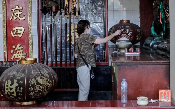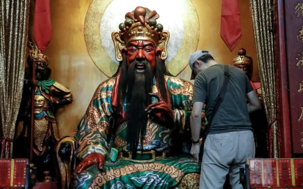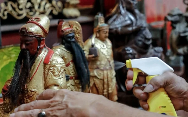 Umat Konghucu di Kota Bandung menyambut Tahun Baru Imlek 2576 dengan melakukan pembersihan patung dewa. (Foto: Fauzan for Ketik.co.id)