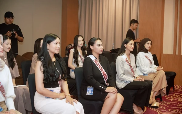 Para finalis Puteri Indonesia Jawa Barat 2025 nampak antusias mengikuti pemaparan yang disampaikan oleh Melati Tedja, Puteri Indonesia Pendidikan dan Kebudayaan 2024 (Foto: Instagram @melatitedja)