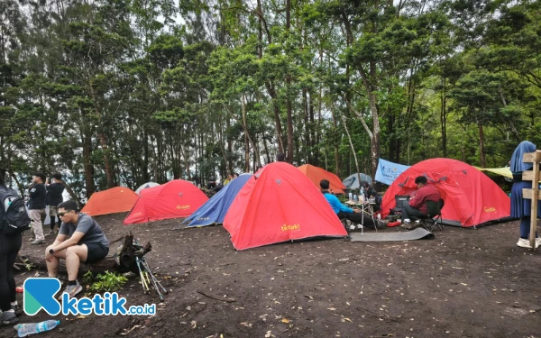 Camping ground di puncak Gunung Bokong bagi pendaki yang menginap agar bisa menikmati city light di malam hari. (Foto: Sholeh/Ketik.co.id)