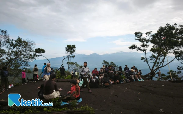 Pendaki menikmati Puncak Gunung Bokong setelah pendakian kurang lebih 1.5 jam. (Foto: Sholeh/Ketik.co.id)