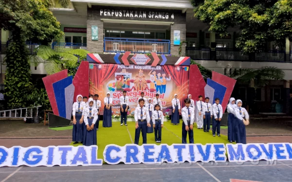 Para pelajar SMPN 4 Kepanjen ketikan menyelenggarakan event. (Foto: Binar Gumilang/ketik.com)