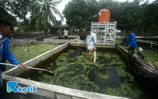 Kolam penelitian ikan belida yang berada di Pusat Riset dan Konservasi Ikan Belida di Kampus C Universitas PGRI Palembang Jalan. Sakti Wiratama RT 8 RW 2 Kelurahan Srimulya, Kecamatan. Sematang Borang, Palembang, Sumatera Selatan, Sabtu 18 Oktober 2025. Pusat Riset dan Konservasi Belida itu dikelola oleh Badan Riset dan Inovasi Nasional (BRIN) dan Universitas PGRI dengan dukungan Kilang Pertamina Internasional Refinery Unit III Plaju. (Foto:Wahyu Rahmanto/ketik.com)