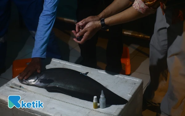 Petugas melakukan perawatan penyuntikan hormon terhadap ikan belida di Pusat Riset dan Konservasi Ikan Belida di Kampus C Universitas PGRI Palembang Jalan. Sakti Wiratama RT 8 RW 2 Kelurahan Srimulya, Kecamatan. Sematang Borang, Palembang, Sumatera Selatan, Sabtu 18 Oktober 2025. Penyuntikan hormon ini untuk menstimulus dalam bertelur sebelum dilakukan pemijahan. (Foto:Wahyu Rahmanto/ketik.com)
