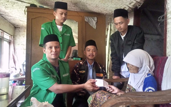 Sementara itu Ketua PAC Ansor Kecamatan Campakamulya, Ade Irawan, turut memberikan bantuan bagi Ibu Sopiah yang masuk kategori rumah tidak layak huni (26/12/2024) (Foto: Ade for Ketik.co.id)