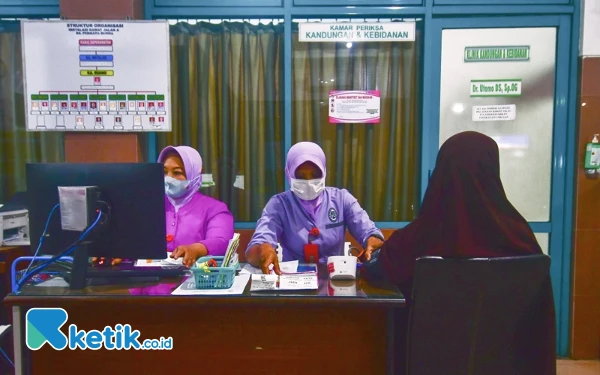 Dengan membawa surat rujukan dari dokter di Faskes I, seorang pasien ibu hamil peserta BPJS Kesehatan melakukan pendaftaran persalinan Caesar di RS Permata Bunda Purwodadi, Kabupaten Grobogan, Jawa Tengah, Jumat (26/7/2024). Surat rujukan diberikan ketika dokter Faskes I melakukan pemeriksaan dan menemukan indikasi kehamilan berisiko tinggi hingga perlu dilakukan persalinan Caesar. (Foto: ketik.co.id/Achmad Fazeri)