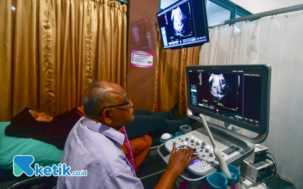 Seorang dokter spesialis kandungan melakukan pemeriksaan ultrasonografi (USG) kepada pasien ibu hamil peserta BPJS Kesehatan di RS Permata Bunda Purwodadi, Kabupaten Grobogan, Jawa Tengah, pada Jumat (26/7/2024). Deputi Komunikasi Publikasi dan Hubungan Masyarakat (Humas) BPJS Kesehatan, Agustian Fardianto menjelaskan, pemeriksaan ANC di FKTP kini bisa dilakukan sebanyak 6 kali—sudah termasuk pemeriksaan USG sebanyak 2 kali. (Foto: ketik.co.id/Achmad Fazeri)