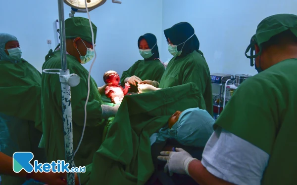 Potret seorang bayi yang baru lahir lewat persalinan Caesar di RS Permata Bunda Purwodadi, Kabupaten Grobogan, Jawa Tengah, Sabtu (27/7/2024). Organisasi Kesehatan Dunia (WHO) menetapkan standar operasi caesar sekitar 10-15% per kelahiran. Berdasar data penelitian WHO pada tahun 2021, operasi caesar terus meningkat secara global, dan saat ini mencakup lebih 1 dari 5 (21%) dari seluruh persalinan. (Foto: ketik.co.id/Achmad Fazeri)