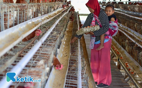 Sambil menggendong cucunya, seorang pekerja, Yanti, memanen telur di kandang ayam petelur di Kabupaten Bojonegoro, Jawa Timur, Minggu, 29 September 2024. Hingga akhir tahun 2023, jumlah pelanggan Program Electrifying Agriculture (EA) PLN telah mencapai lebih dari 241.700 pelanggan. Angka itu meningkat sekitar 25 persen dibanding pada tahun 2022 yang hanya sebesar 193.058 pelanggan. (Foto: Achmad Fazeri/Ketik.co.id)