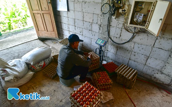 Seorang pekerja, Jupri, menimbang telur hasil panen di kandang ayam petelur di Kabupaten Bojonegoro, Jawa Timur, Minggu, 29 September 2024. Dari 2.000 ekor ayam, telur yang dipanen mencapai 100 hingga 120 kilogram setiap hari. Direktur Utama PT PLN Darmawan Prasodjo menjelaskan, melalui program EA, PLN ingin mendukung pelaku usaha di sektor agrikultur untuk meningkatkan produktivitas serta efisiensi operasional yang berujung kepada peningkatan keuntungan. Juga menghadirkan unit bisnis ramah lingkungan. (Foto: Achmad Fazeri/Ketik.co.id)