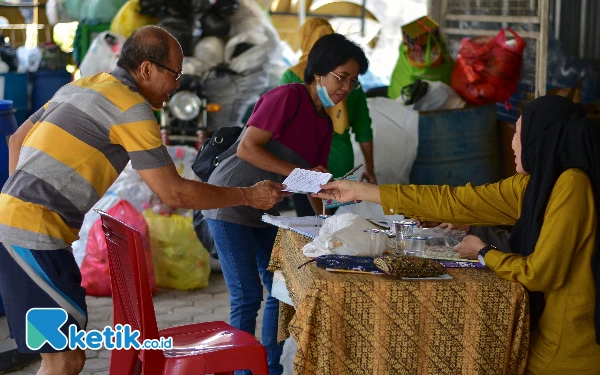 Dengan menciptakan Ekonomi Hijau melalui program “Memilah Sampah Menabung Emas” atau (MSME), Pegadaian ingin menghadirkan kesejahteraan bagi masyarakat Indonesia, terutama di daerah pemukiman padat penduduk. Nasabah bisa melakukan pencairan uang hasil penukaran sampah sebanyak dua kali dalam setahun, yakni bulan Juli serta Desember. Uang tersebut kemudian ditabung melalui buku tabungan emas pegadaian. Nasabah baru bisa mencairkan dalam bentuk emas jika saldonya telah mencapai harga 1 gram emas. (Foto: Achmad Fazeri/Ketik.co.id)