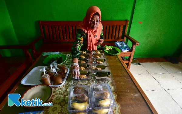 Kader Posyandu Puskesmas Wirosari 1, Murtasiyah, mengemas kudapan siklus menu ke 5 di kediamannya di Bandang, Kelurahan Kunden, Kecamatan Wirosari, Kabupaten Grobogan, Kamis, 5 September 2024. Kudapan siklus ke 5 PMT untuk balita BGM atau stunting terdiri dari ayam goreng, arem-arem isi ati ampela, dan bubur kacang hijau, sedangkan untuk ibu hamil KEK ada tambahan buah pisang. (Foto: Achmad Fazeri/Ketik.co.id)