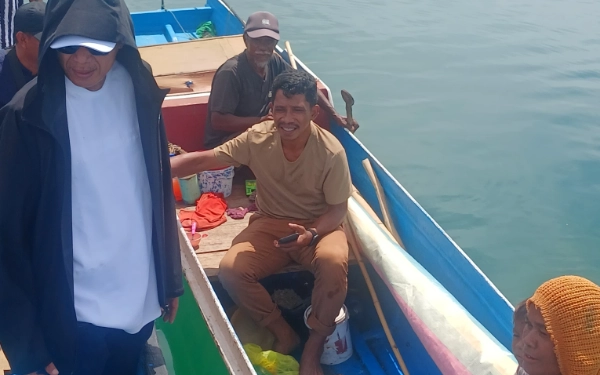 Rombongan Wabup dengan bodi viber mengelilingi seluruh area budi daya rumput laut Sabtu, 12 Juli 2025 (Foto: Mursal/Ketik.com)