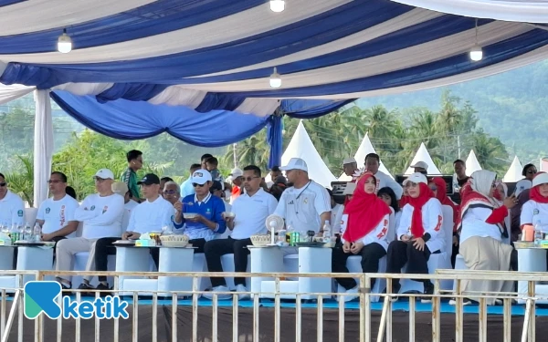 Kehadiran Bupati Hasan Ali Bassam Kasuba dan Wakil Bupati Helmi Umar Muchsin pada Car Free Day memicu semangat masyarakat, menghadirkan energi kolektif yang menyatukan kesadaran sehat dengan spirit Kemerdekaan RI ke-80 di Halmahera Selatan (Foto: Mursal/Ketik)