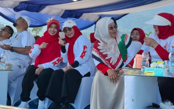 Dalam momentum Car Free Day Halmahera Selatan, Ketua PKK Rifa’at Al-Sa’adah Bassam bersama Ketua Gabungan Organisasi Wanita (GOW) Mardiana Helmi tampak memberi warna pada suasana dengan senyum ceria dan gestur hangat ke arah kamera. Kehadiran keduanya bukan sekadar simbol representasi perempuan, tetapi juga menjadi aksentuasi semangat kebersamaan yang memperkuat harmoni sehat dan makna kemerdekaan di usia Republik Indonesia ke-80. (Foto: Mursal/Ketik)