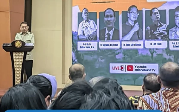 Menteri Kebudayaan RI, Fadli Zon, memberikan sambutan dalam diskusi publik tentang Situs Gunung Padang. (Foto: Instagram @disbudpar.cianjur)