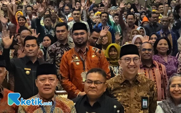 Bupati Halsel di tengah-tengah FTBIN dikelikingi Tamu undangan dan Bupati dari berbagai daerah di Indonesia Kamis, (2/5/2024) (Foto Humas Pemda Halsel For Ketik.co.id)