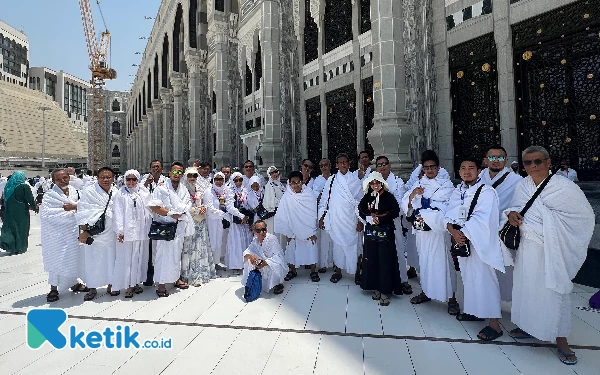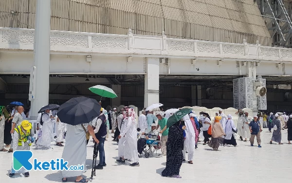 Para jemaah menggunakan kacamata anti UV karena suhu Arab Saudi 47 derajat sampai 51 derajat. (Foto: Muhsin Budiono/Ketik.co.id)