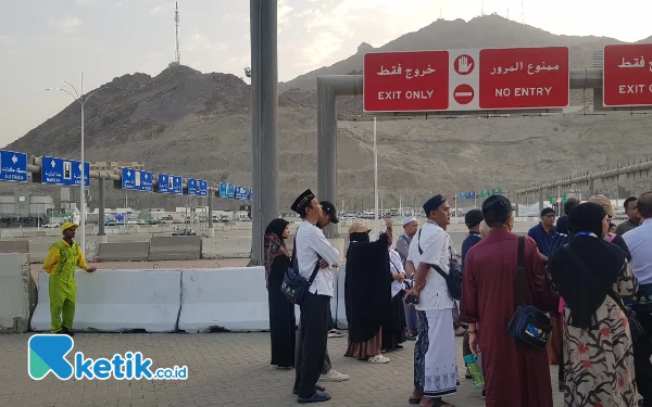Rombongan tour jemaah saat melihat secara langsung tempat lempar jumroh sebelum puncak haji. (Foto: Muhsin Budiono/Ketik.co.id)