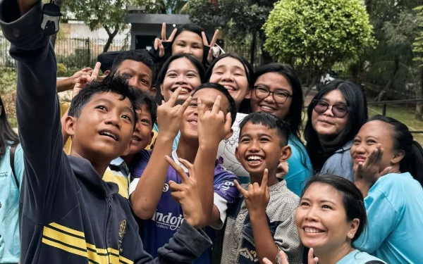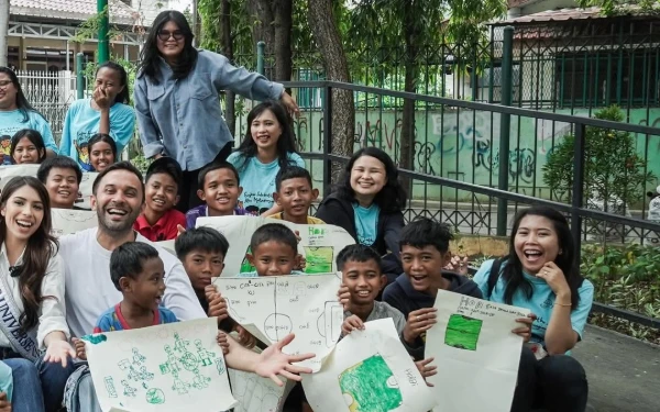 Momen Miss Universe Indonesia 2024, Clara Shafira foto selfie bersama anak-anak komunitas di Cengkareng, Jakarta (Foto: @missuniverseindonesia2024)
