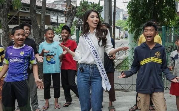 Miss Universe Indonesia 2024, Clara Shafira mengunjungi lokasi komunitas sahabat anak di Cengkareng, Jakarta (Foto: @missuniverseindonesia2024)