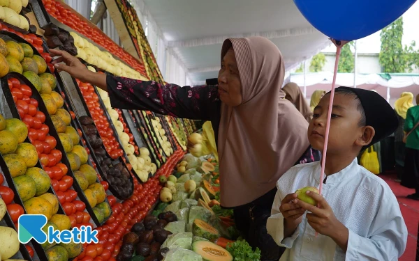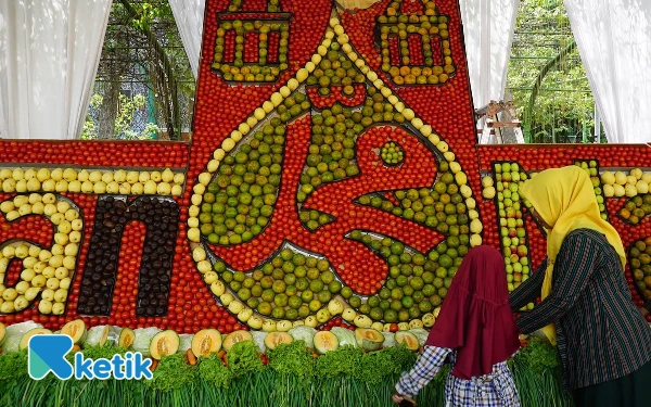 Hiasan sayur dan buah kegiatan maulid nabi di halaman ballroom hotel Yusro Jombang. (Foto: Karimatul Maslahah/Ketik)