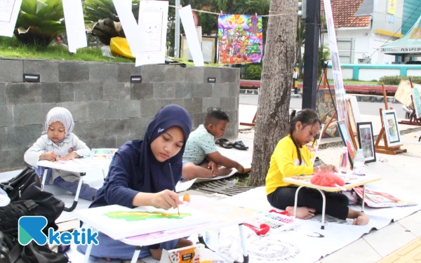 Selain itu ada juga 15 pelukis cilik binaan Kopijo yang unjuk kebolehan dengan lukisan dan karya mereka di acara tersebut. (Foto: Rifat/Ketik.com)