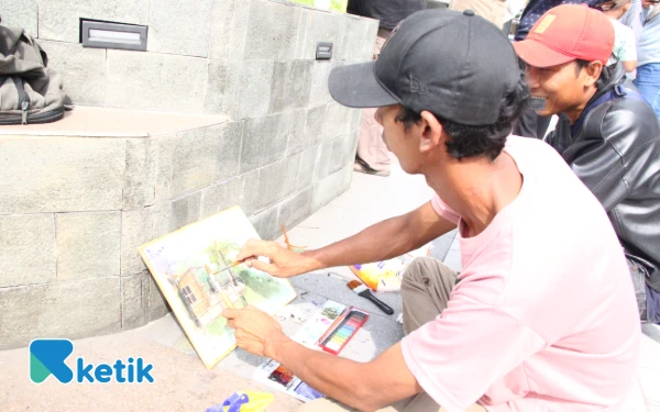 Ketua Kopijo Khoirul Anas menyebut ada 25 pelukis yang ambil bagian dalam gelaran ini. (Foto: Rifat/Ketik.com)