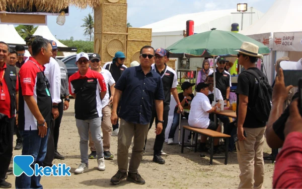 Gubernur Nusa Tenggara Barat Lalu Muhamad Iqbal mengunjungi stand UMKM NTB di kompleks Sirkuit Mandalika, (Foto: Rahmat Rifadin/Ketik)