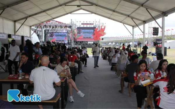 Di area Pesta Rakyat Mandalika ini juga disediakan giant screen untuk nonton bareng bagi pengunjung yang lelah dan tidak ingin melihat dari tribun penonton. (Foto: Rahmat Rifadin/Ketik)