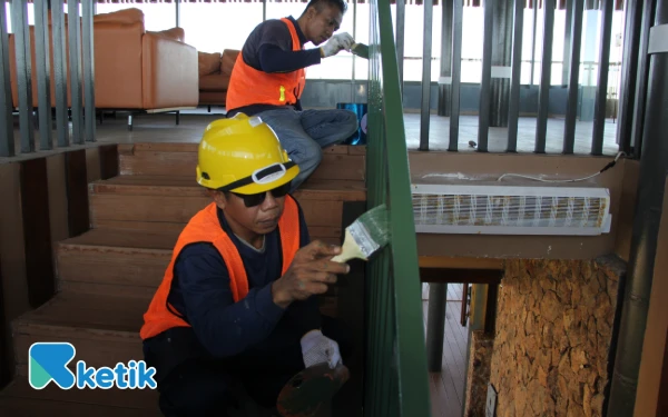 Para pekerja mempercantik 360 Hill di kompleks Sirkuit Mandalika untuk menyambut para tamu VIP jelang ajang MotoGP Indonesia 2025, 3-5 Oktober 2025. (Foto: Rahmat Rifadin/Ketik)