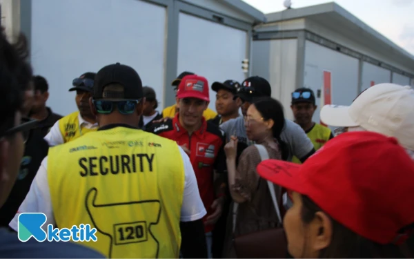 Marquez dikerubungi penonton untuk meminta tanda tangan di paddock Sirkuit Mandalika. (Foto: Rahmat Rifadin/Ketik)