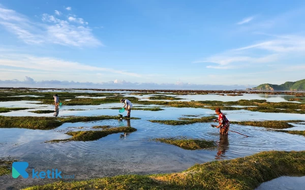 Aktivitas nelayan di Pantai Lombok menangkap ikan menggunakan akar tuba atau akar beracun. (Foto: Kiagus Firdaus/Ketik.co.id)